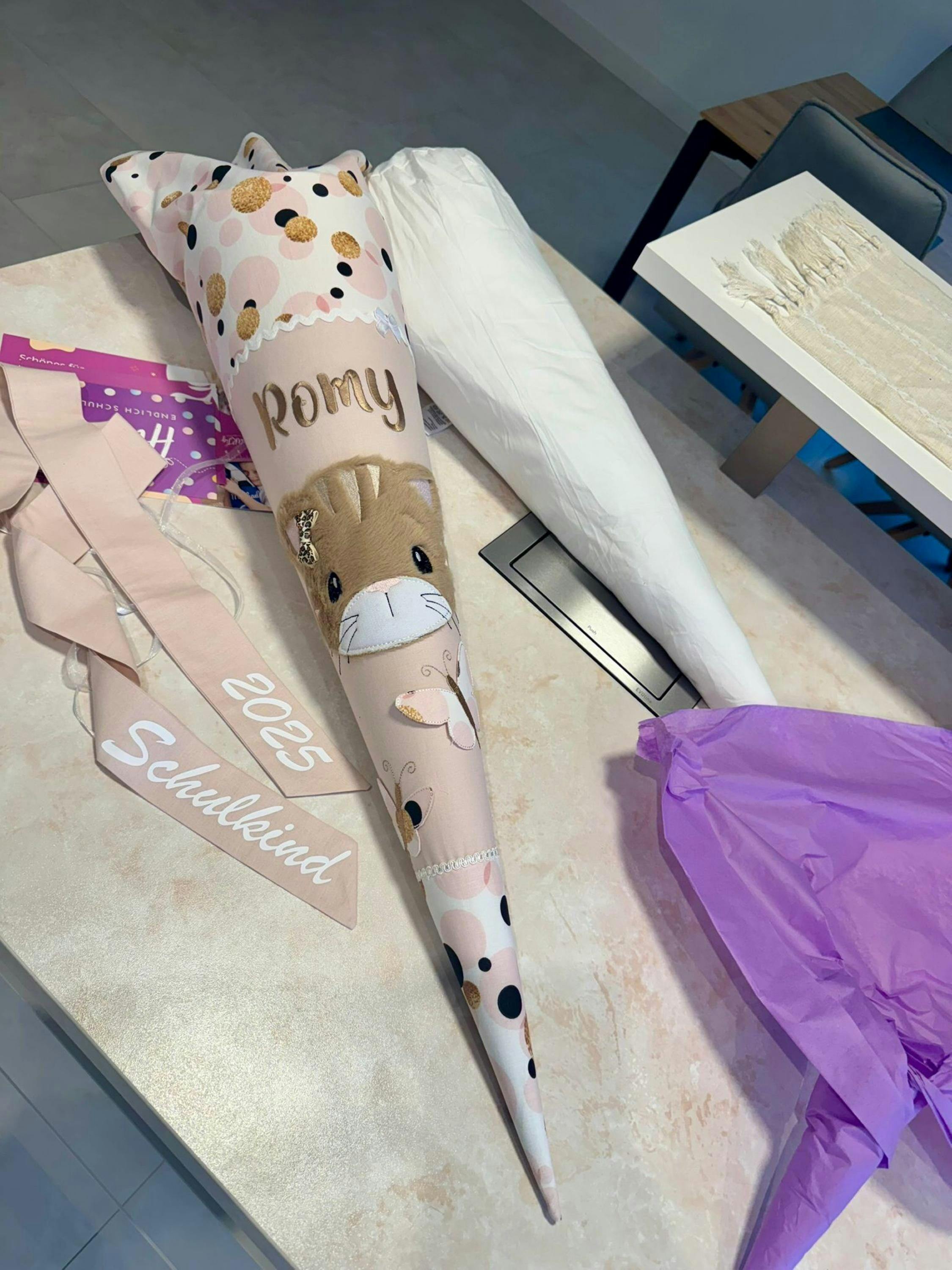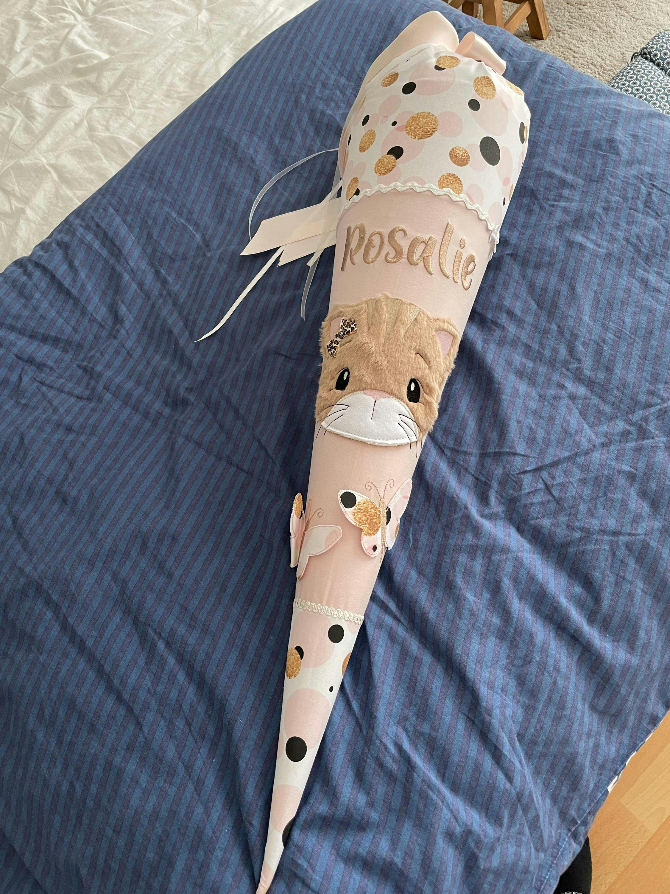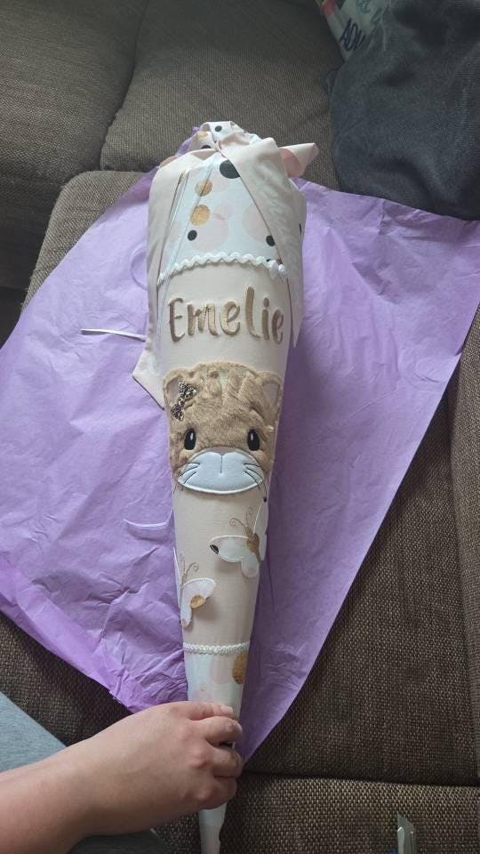 Du kaufst ein Unikat, das für Dich angefertigt wird. Jede Schultüte wird von Hand zugeschnitten, genäht, gebügelt und individuell veredelt. Die Farben können daher saisonal und je nach Verarbeitung bzw. Monitoreinstellung leicht vom Beispielbild abweichen.