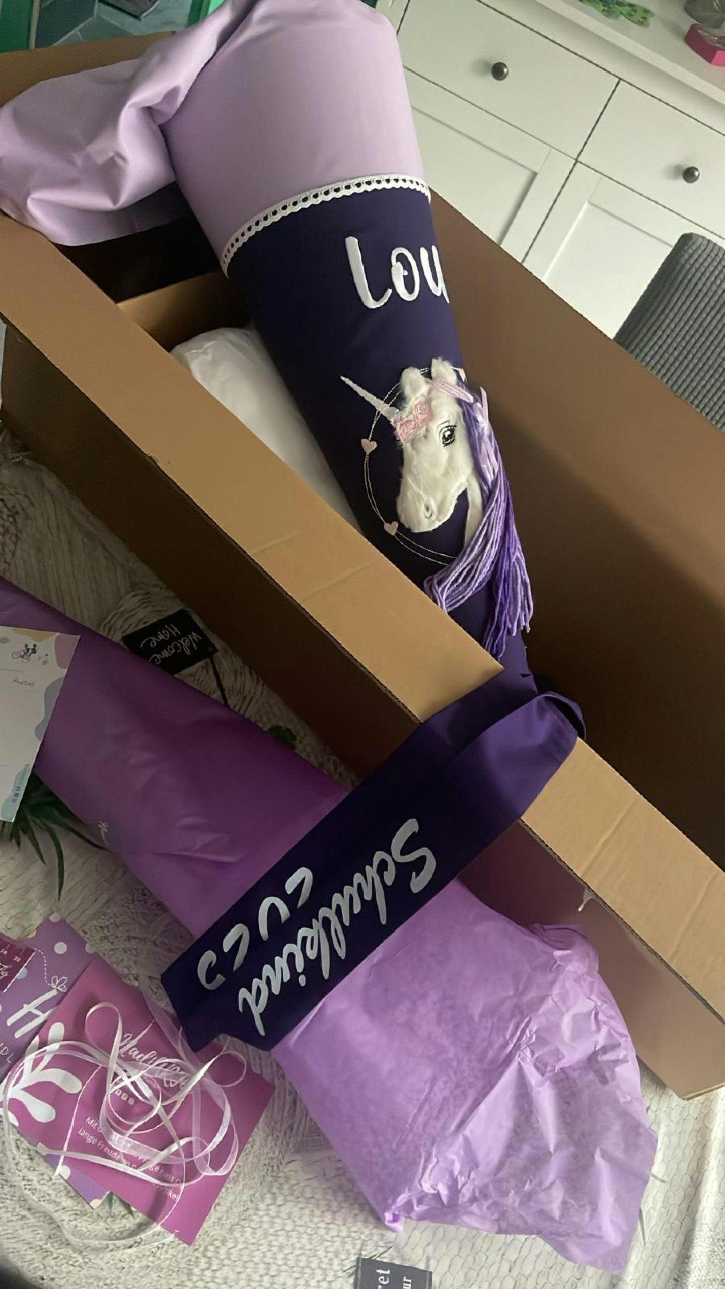 Du kaufst ein Unikat, das für Dich angefertigt wird. Jede Schultüte wird von Hand zugeschnitten, genäht, gebügelt und individuell veredelt. Die Farben können daher saisonal und je nach Verarbeitung bzw. Monitoreinstellung leicht vom Beispielbild abweichen.