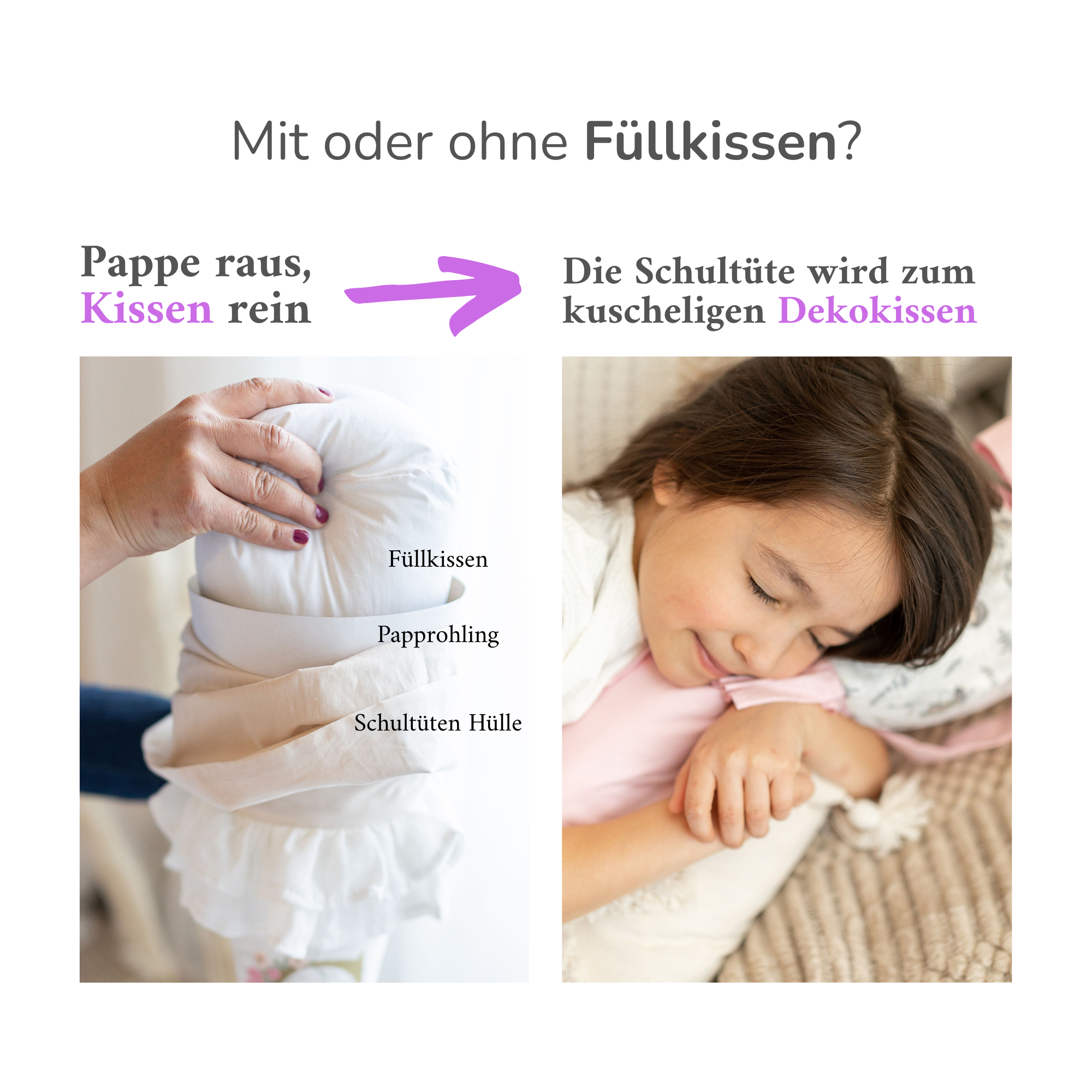 Nach der Einschulung kannst du deine Stoffschultüte mit dem passenden Füllkissen im Handumdrehen in ein liebevolles Kuschelkissen verwandeln.