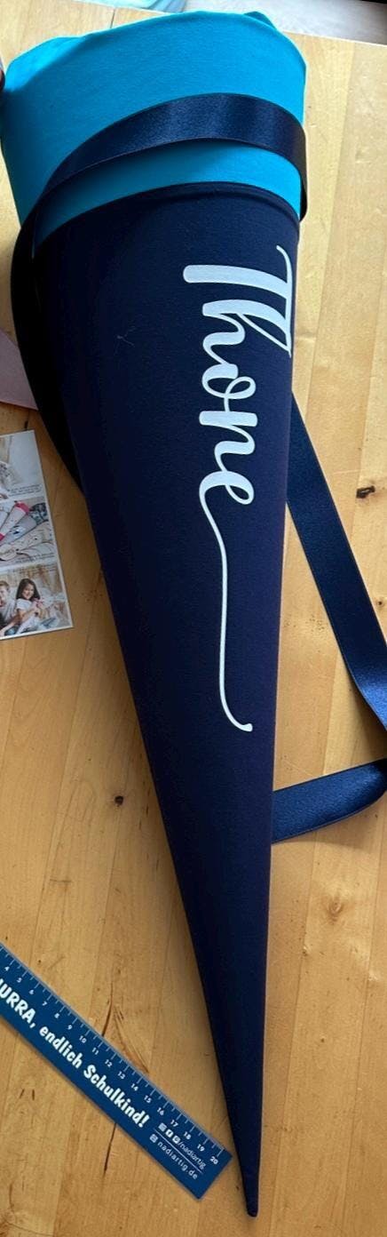 - groß: 70 cm Papprohling. Das entspricht einer Schultüten-Hülle von ca. 95 cm Länge. Diese Größe ist üblich und für das Einschulungskind gut geeignet.