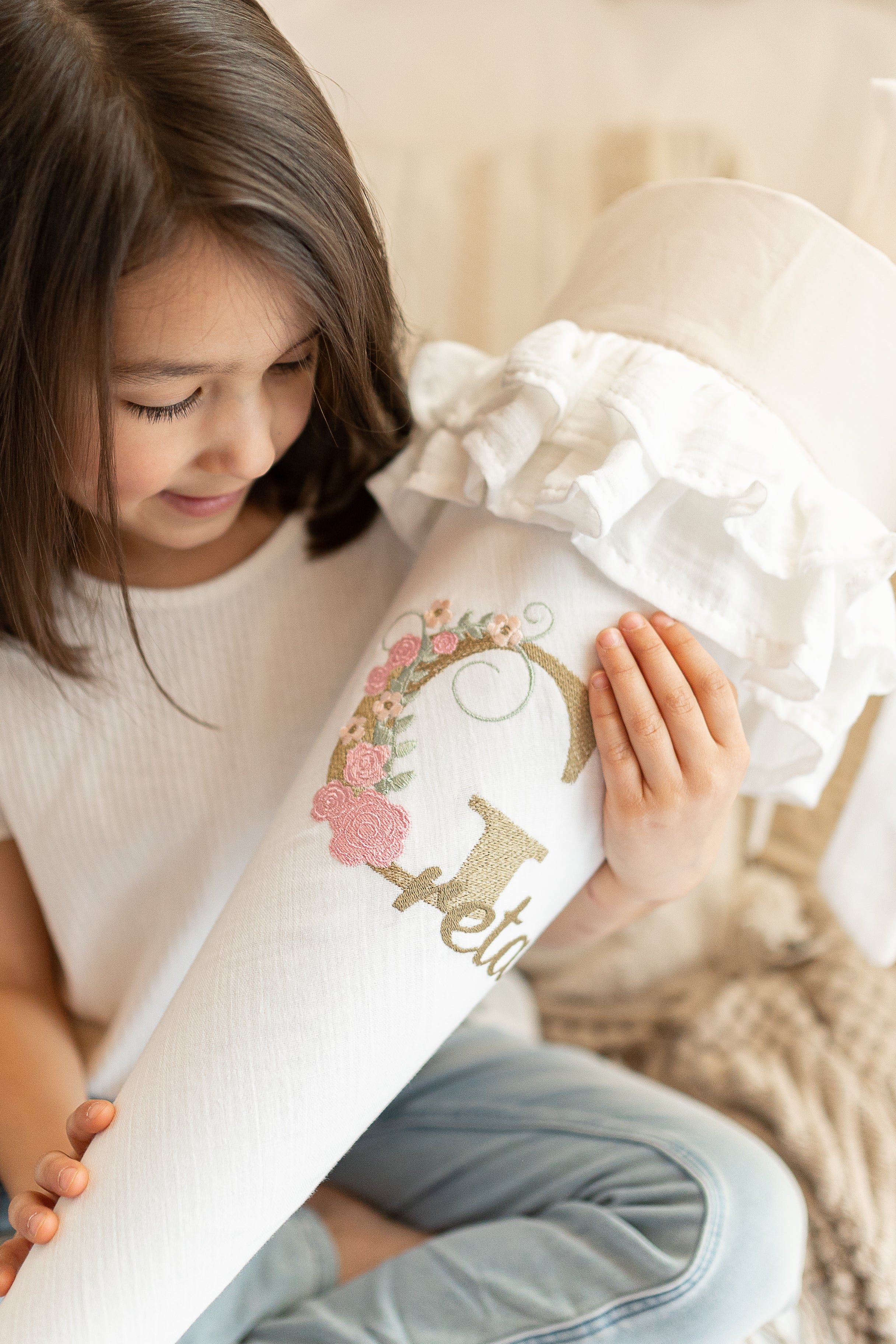In meinem Atelier fertige ich mit viel Liebe personalisierte Geschenke für besondere Anlässe wie Einschulung, Kindergarten, Geburt & Geburtstag. Hochwertige Materialien, liebevolle Handarbeit und ästhetisches Design stehen dabei im Mittelpunkt.