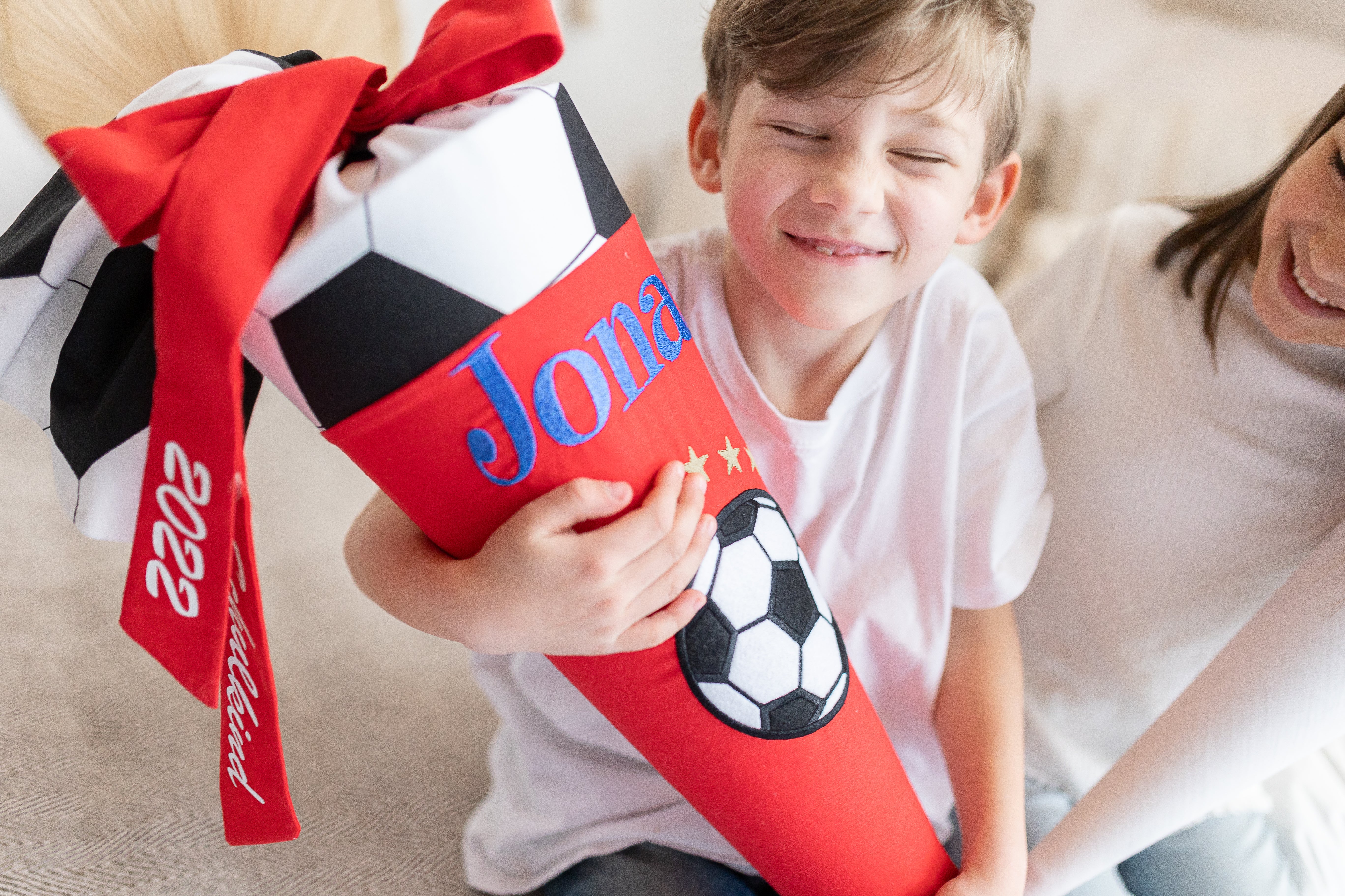 "Eine so wunderschöne Schultüte, die ganz individuell nach meinen Vorstellungen angepasst wurde und perfekt zum FC Bayern Ranzen von Step by Step passt. Dazu gab es ein Kuschelkissen. Unser Sohn wird Augen machen… 😊 Vielen Dank"